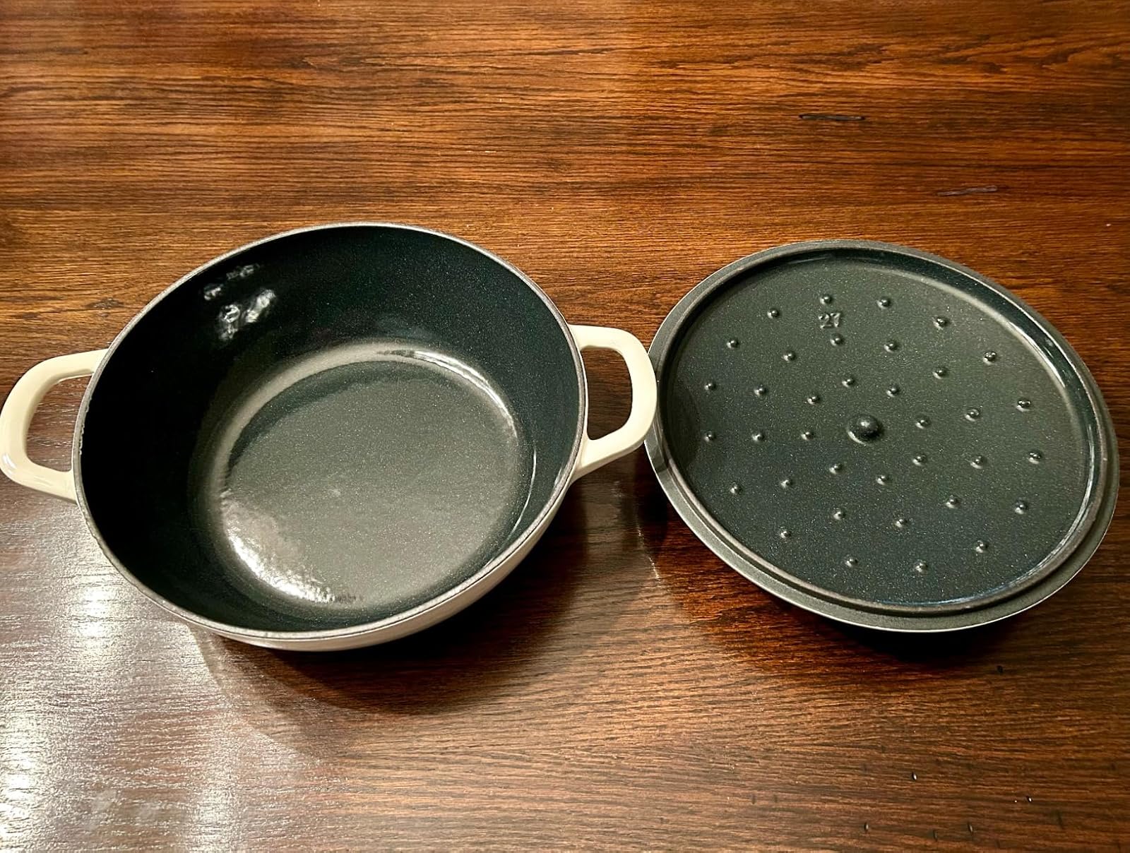 I love this so much. I use it all the time. The size is perfect for two people that like a little leftovers. And it works as well as my Le Creuset.