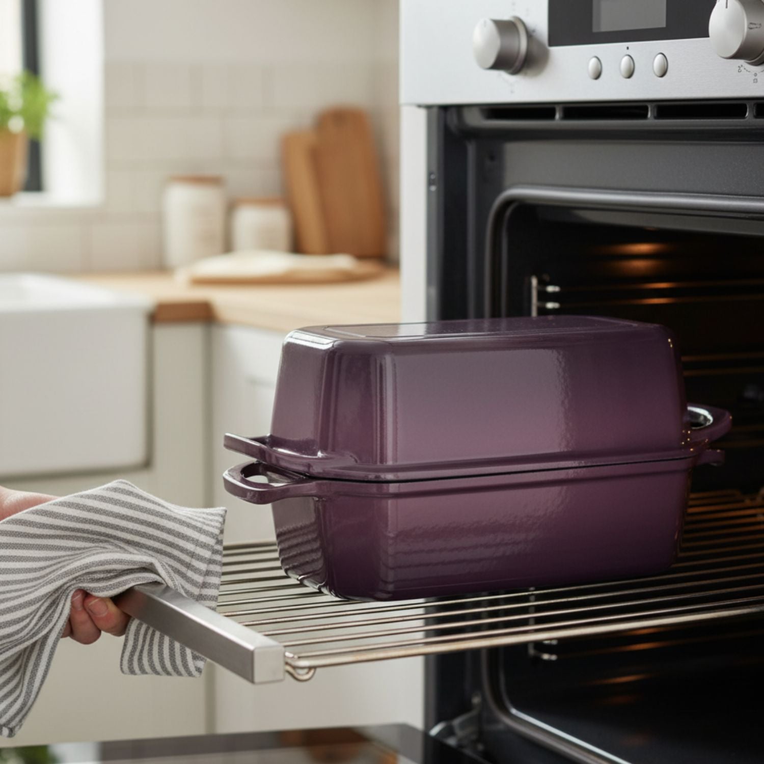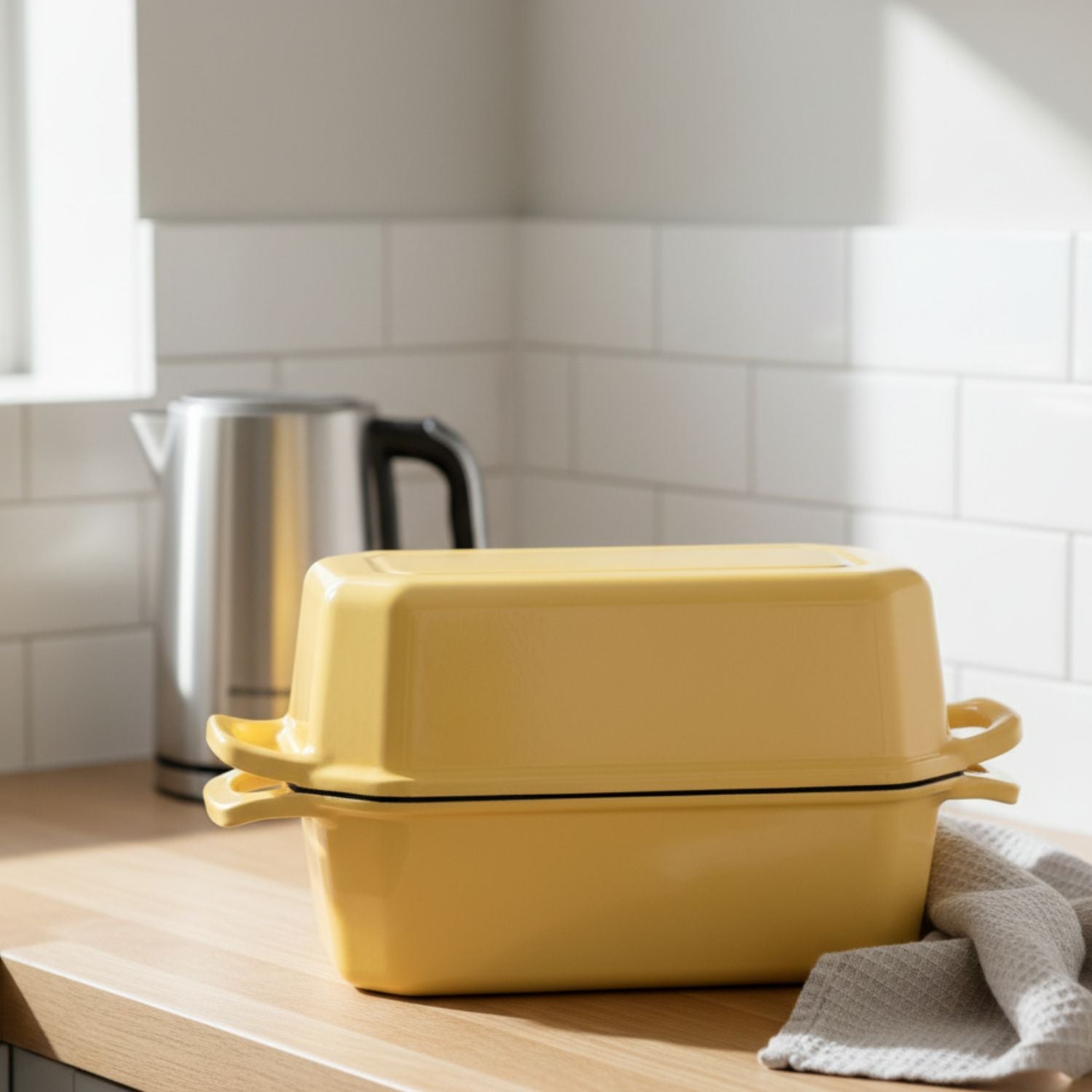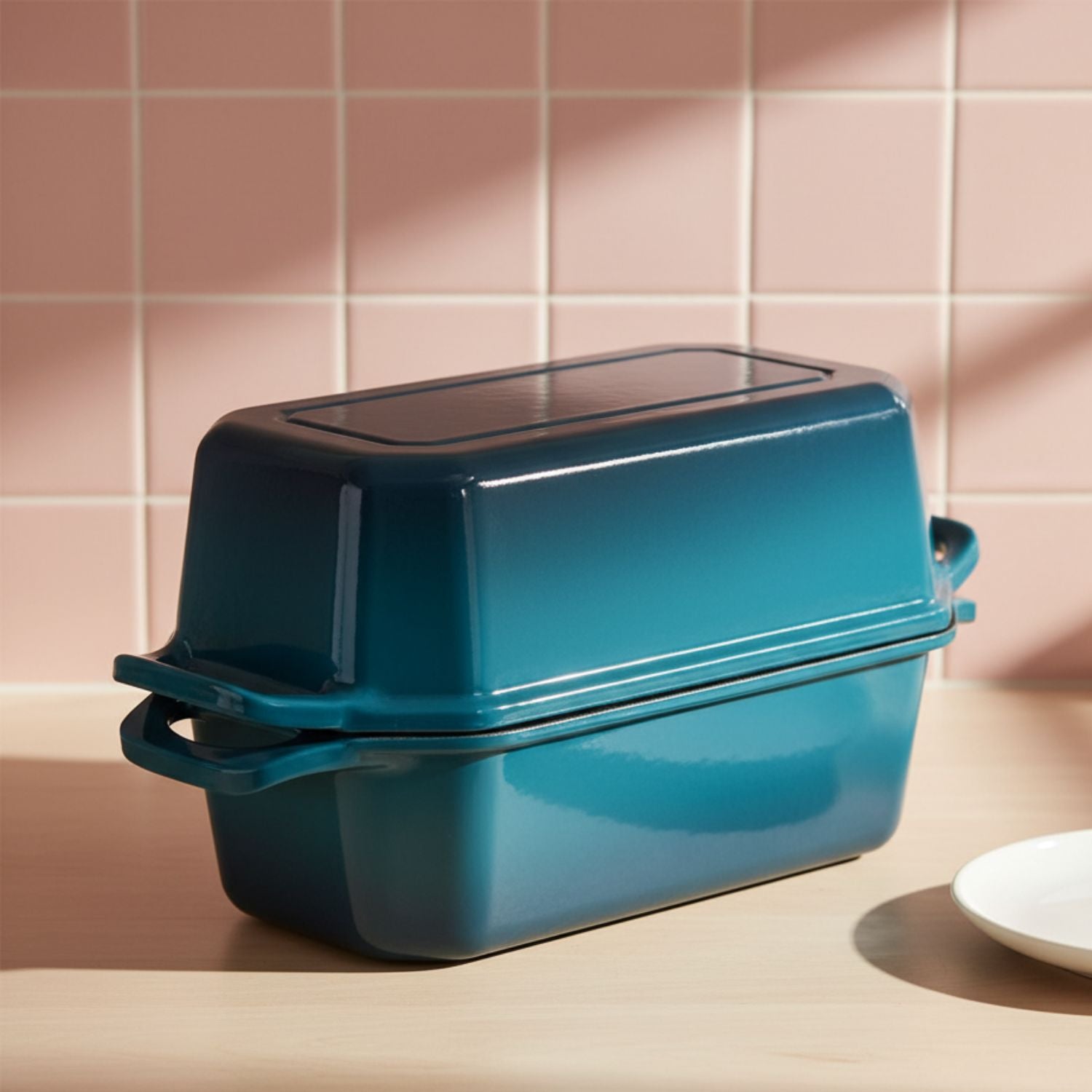 Rectangular Enameled Cast Iron Loaf Baker for Bread Baking