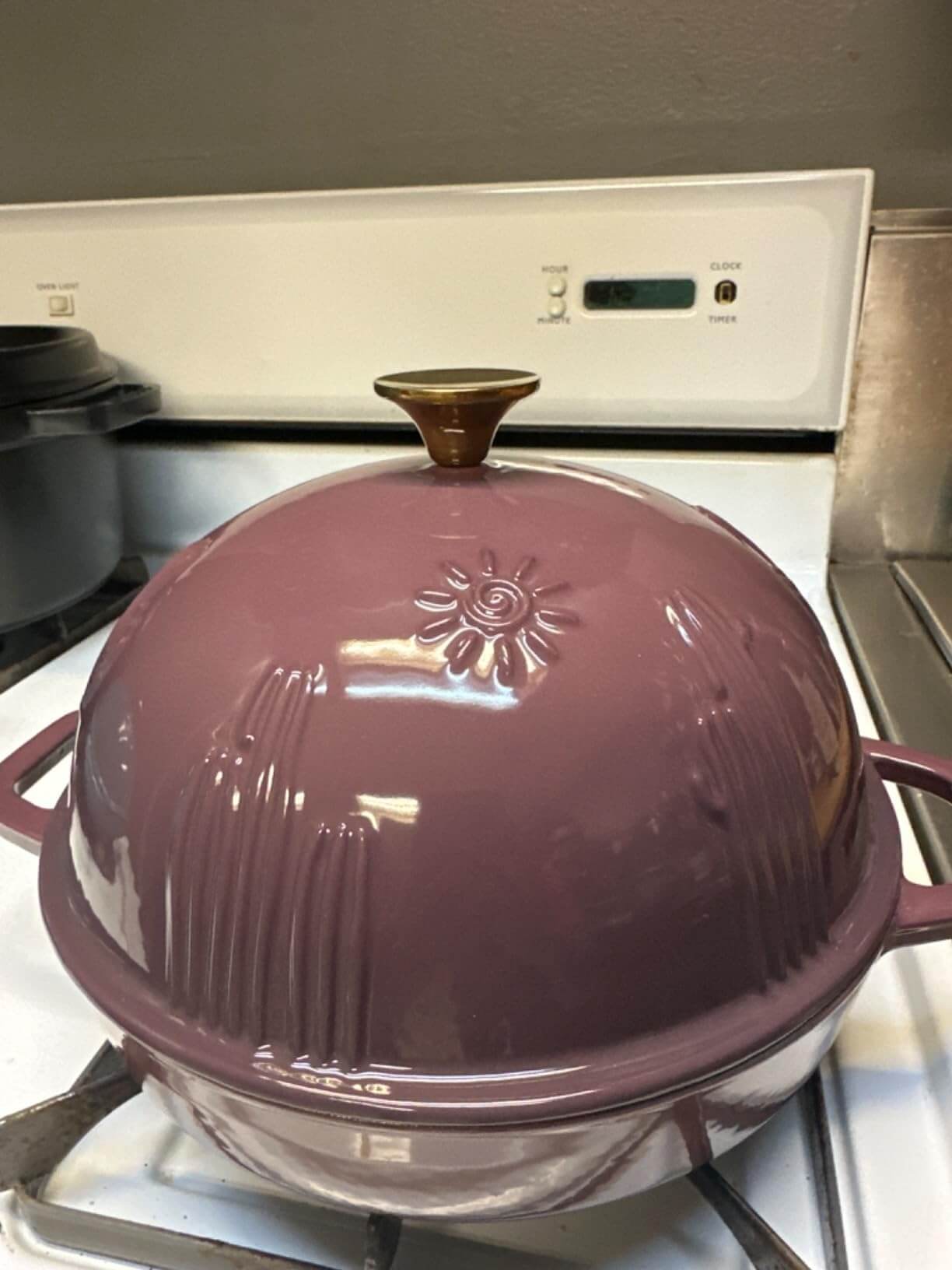I love this bread cloche. My sourdough bakes evenly and the bottom doesn’t burn. My only regret is not purchasing 2 while they were on sale.
