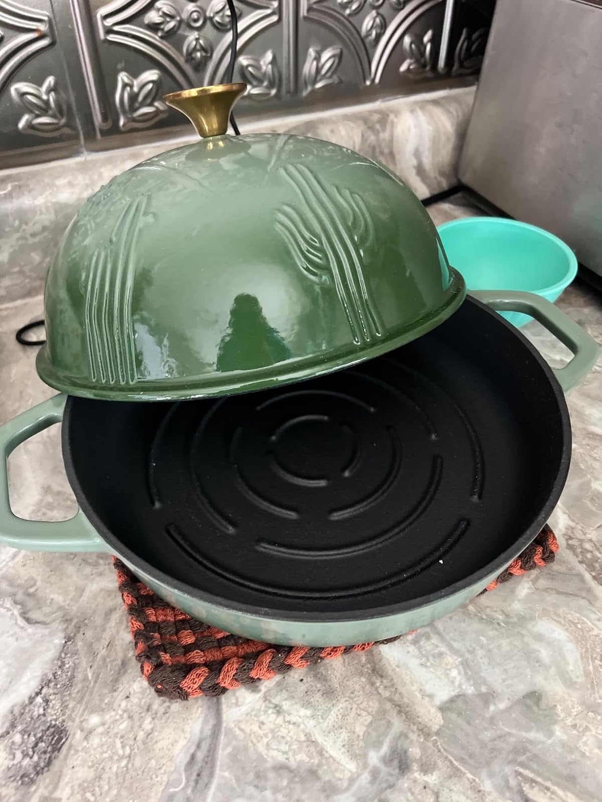 I love this Dutch oven!! It’s right up my alley with the fun green color and cactus design. It also bakes bread well and washes up nicely! Great buy.