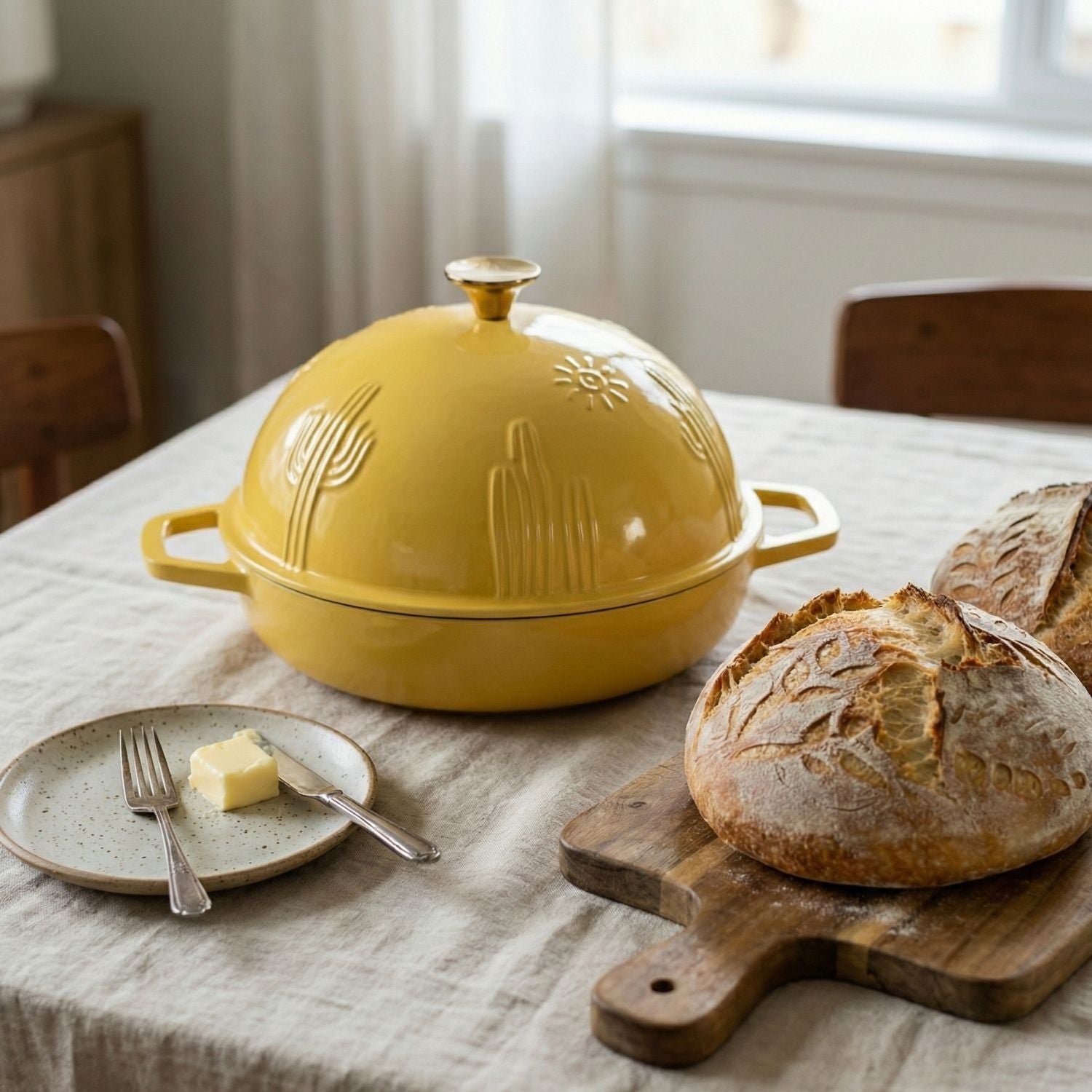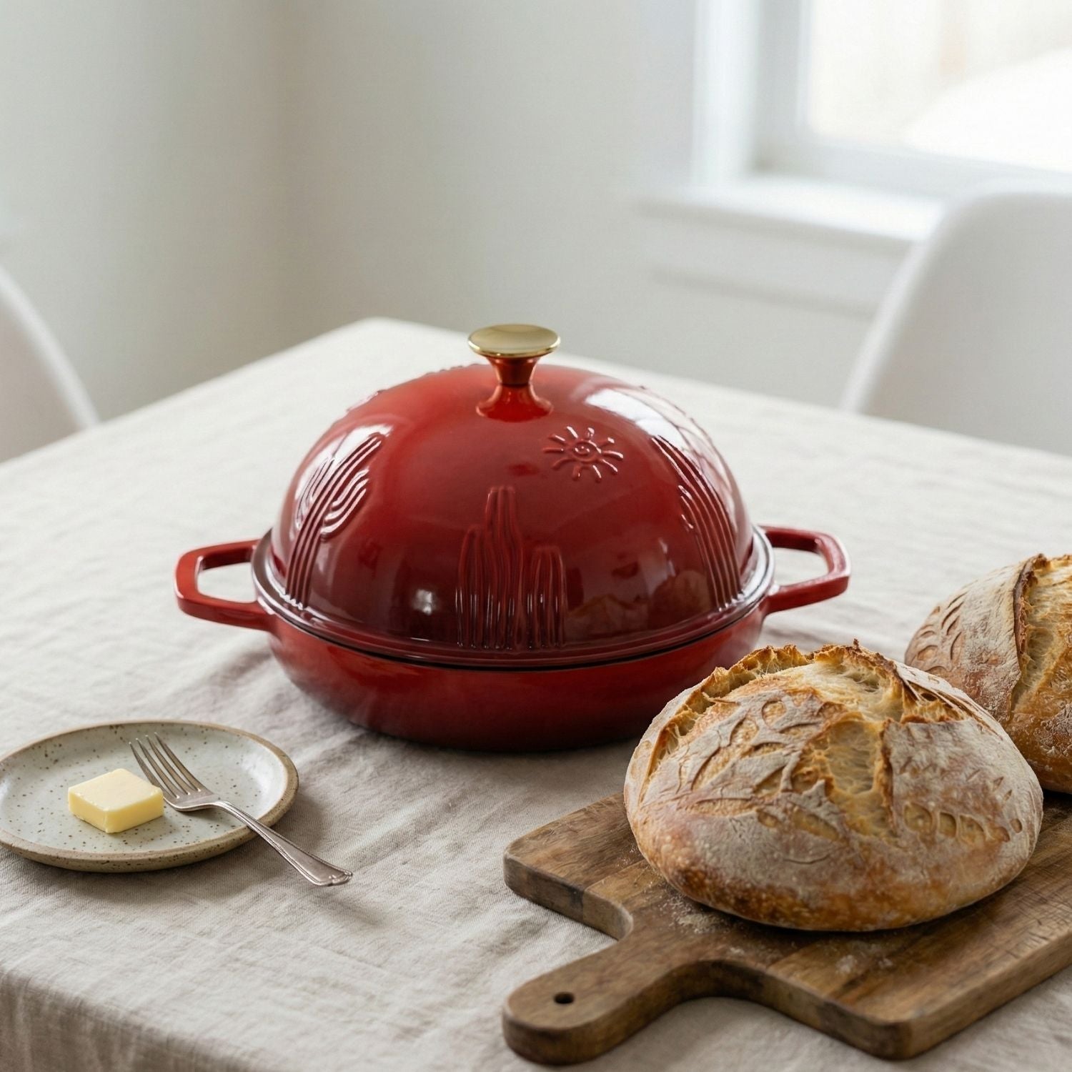 Bread is where it really shines, but the shallow base is great on its own for roasting vegetables, small chickens, or fish, and for baked dishes like gratins or cobblers. The domed lid can cover those bakes in the first part of cooking to keep moisture in, then come off for browning. If you want a true all-purpose pot for soups and braises, a deeper Dutch oven is still the best partner — think of this as your dedicated bread and roasting piece.