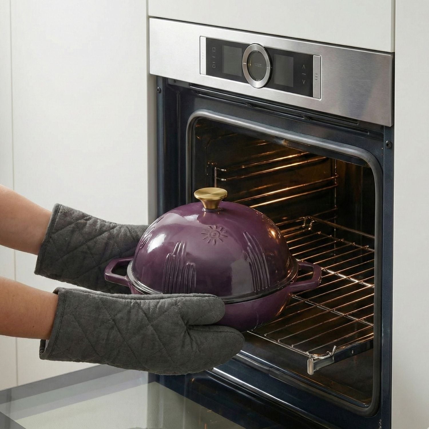 Designed specifically for safety. The low-profile walls allow you to score your dough with confidence and ease, eliminating the fear of burning your hands on high, hot edges found in traditional Dutch ovens.