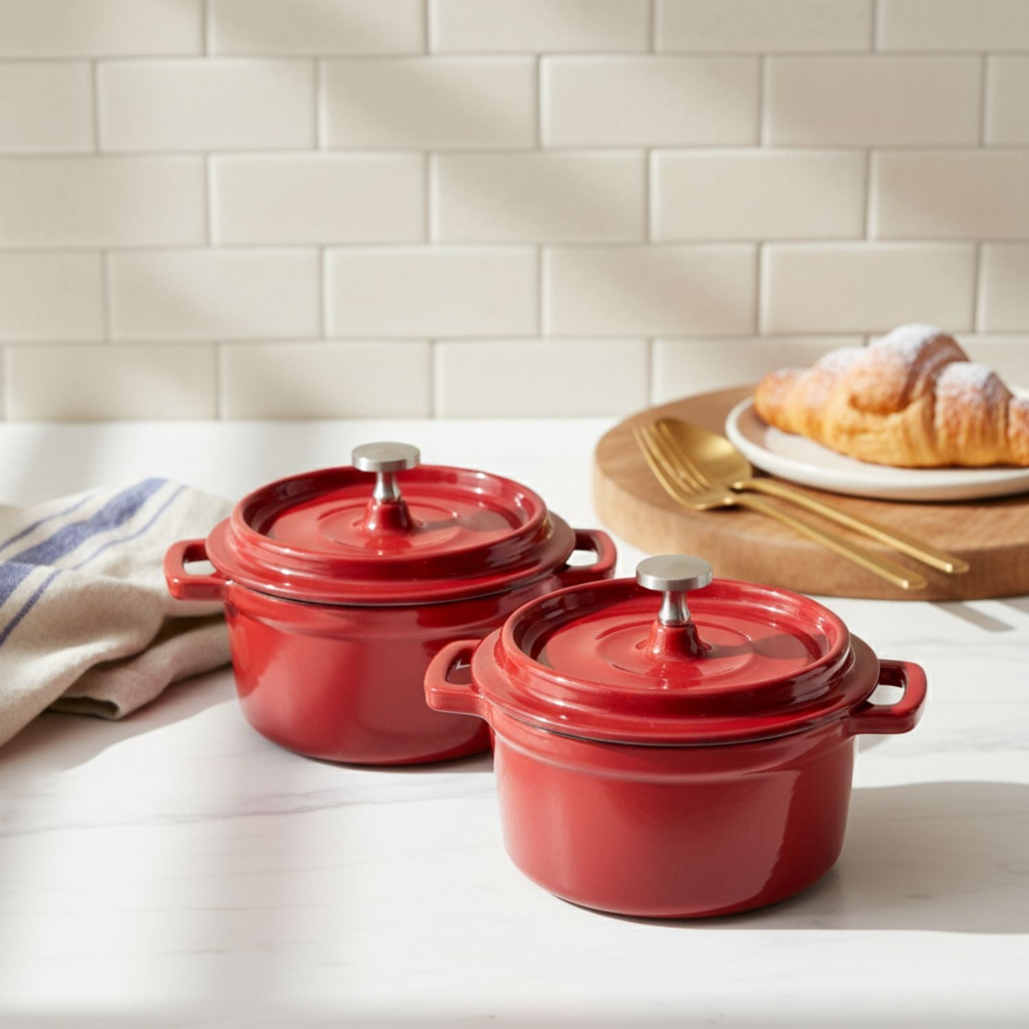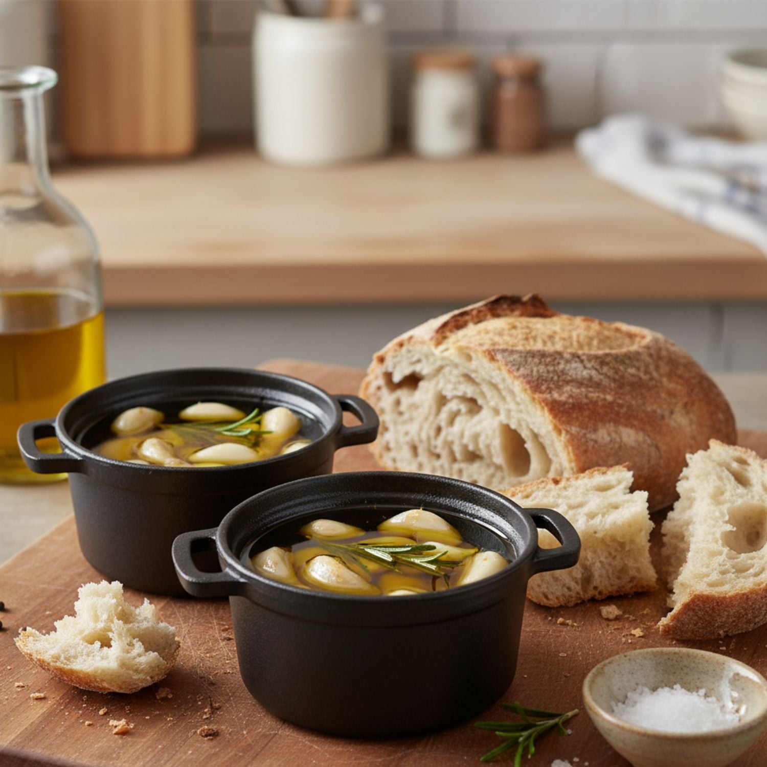 From garlic confit to gooey cheese dips and mini loaves, these petite cocottes turn simple ingredients into table-ready comfort food. Thick cast iron heats evenly for deep browning. Choose pre-seasoned black for high-heat searing and patina, or glossy enameled for easy cleanup and a pop of colour. Oven, stovetop, and grill friendly.