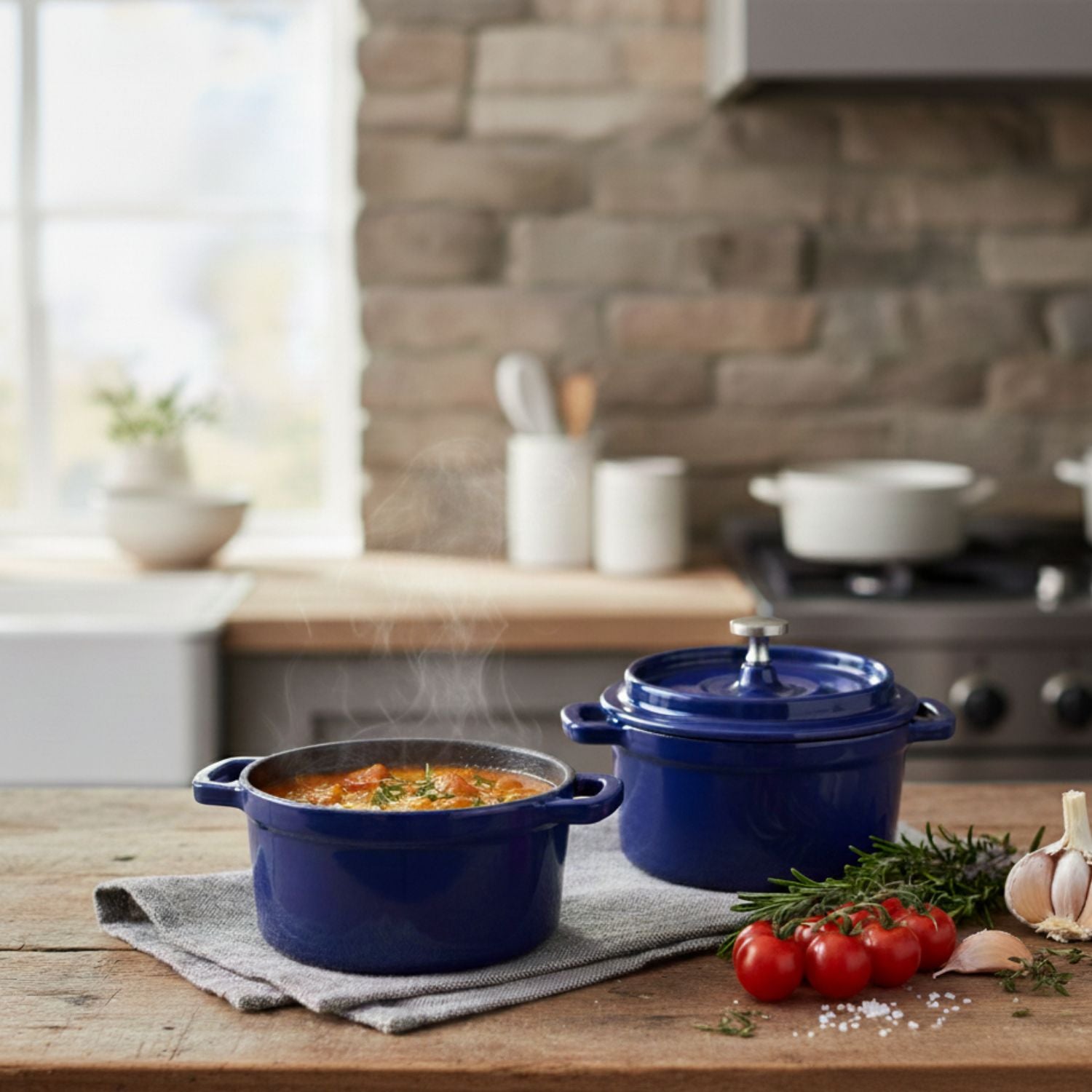 Enameled cast iron offers the same excellent heat retention and even cooking but without the hassle of seasoning. The enamel surface is non-reactive, so you can cook acidic foods worry-free. It’s easier to clean and doesn’t rust, while still delivering that classic cast iron performance.